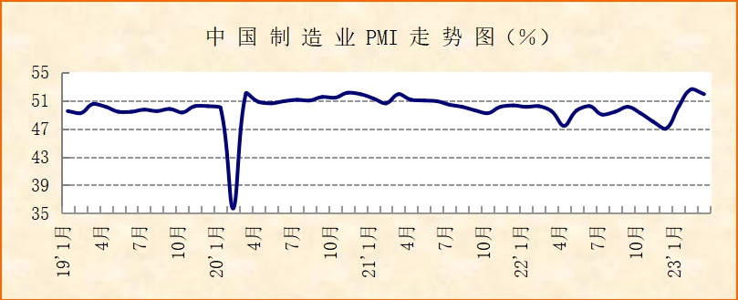 中國物流與采購聯(lián)合會(huì)、國家統(tǒng)計(jì)局服務(wù)業(yè)調(diào)查中心發(fā)布的2023年3月份中國制造業(yè)采購經(jīng)理指數(shù)(PMI)為51.9%,較上月下降0.7個(gè)百分點(diǎn),仍位于52%左右較好水平。指數(shù)連續(xù)3個(gè)月運(yùn)行在擴(kuò)張區(qū)間,顯示經(jīng)濟(jì)繼續(xù)保持平穩(wěn)較快回升。分項(xiàng)指數(shù)變化顯示,市場需求平穩(wěn)較快增長,生產(chǎn)活動(dòng)穩(wěn)定恢復(fù),大中小型企業(yè)經(jīng)營活動(dòng)穩(wěn)中有增,企業(yè)成本趨于下降。