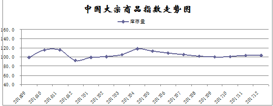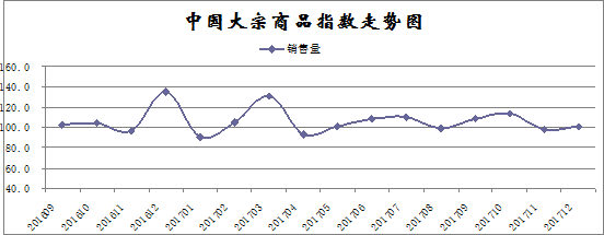 由中國物流與采購聯(lián)合會調(diào)查、發(fā)布的2017年12月份中國大宗商品指數(shù)為100.6%,指數(shù)止跌回升。各分項(xiàng)指數(shù)中,供應(yīng)指數(shù)繼續(xù)下跌,但跌幅有所收窄,銷售指數(shù)止跌回升,庫存指數(shù)繼續(xù)上升,但升幅明顯收窄,商品價(jià)格繼續(xù)上漲,且漲幅仍在擴(kuò)大。數(shù)據(jù)顯示,當(dāng)前國內(nèi)大宗商品市場需求上升,價(jià)格繼續(xù)上漲,供應(yīng)持續(xù)下降,供需銜接基本正常。綜合來看,當(dāng)前國內(nèi)大宗商品市場基本回歸穩(wěn)中趨升的基本態(tài)勢,前期季節(jié)性因素影響造成的短期波動(dòng)基本平復(fù),但隨著價(jià)格高位風(fēng)險(xiǎn)不斷聚集,后期市場仍面臨調(diào)整風(fēng)險(xiǎn)。