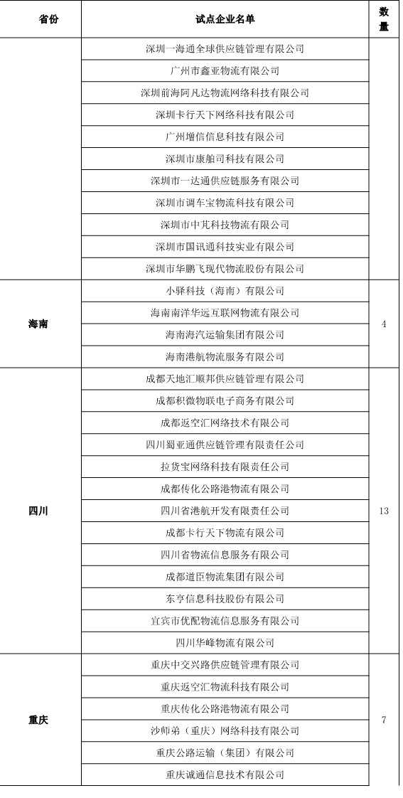 3月6日,交通運(yùn)輸部發(fā)布《交通運(yùn)輸部辦公廳關(guān)于做好無(wú)車(chē)承運(yùn)試點(diǎn)運(yùn)行監(jiān)測(cè)工作的通知》?!锻ㄖ凤@示,截至目前,29個(gè)?。▍^(qū)、市)共篩選確定了283個(gè)無(wú)車(chē)承運(yùn)試點(diǎn)企業(yè)并報(bào)部。